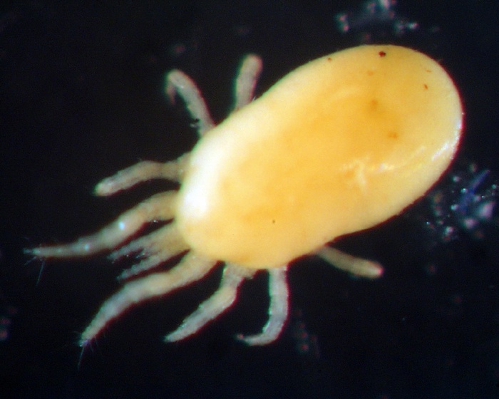 Weibchen werden bis zu 2 mm groß, insbesondere nach der Blutaufnahme